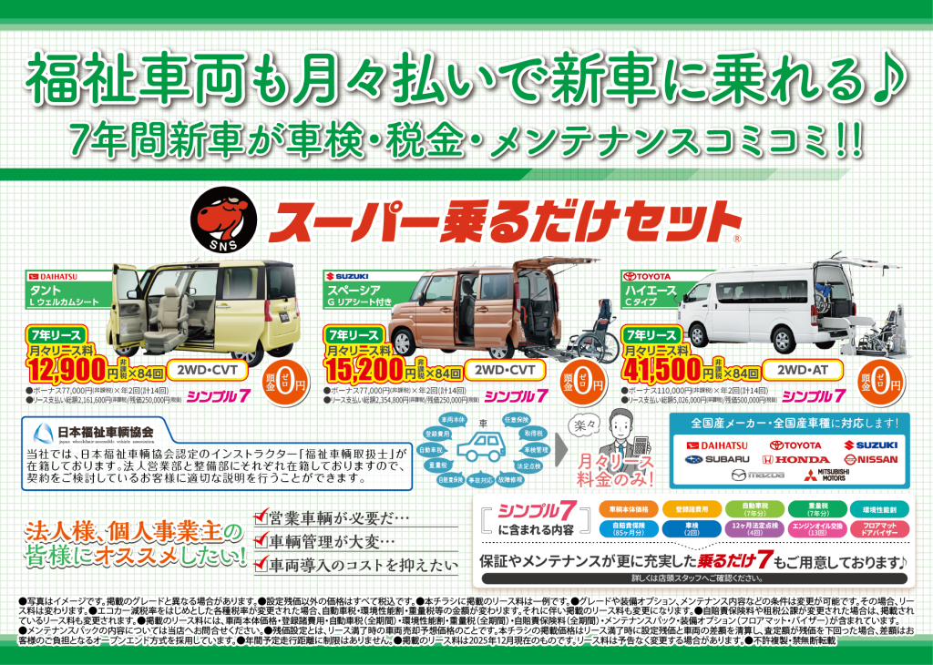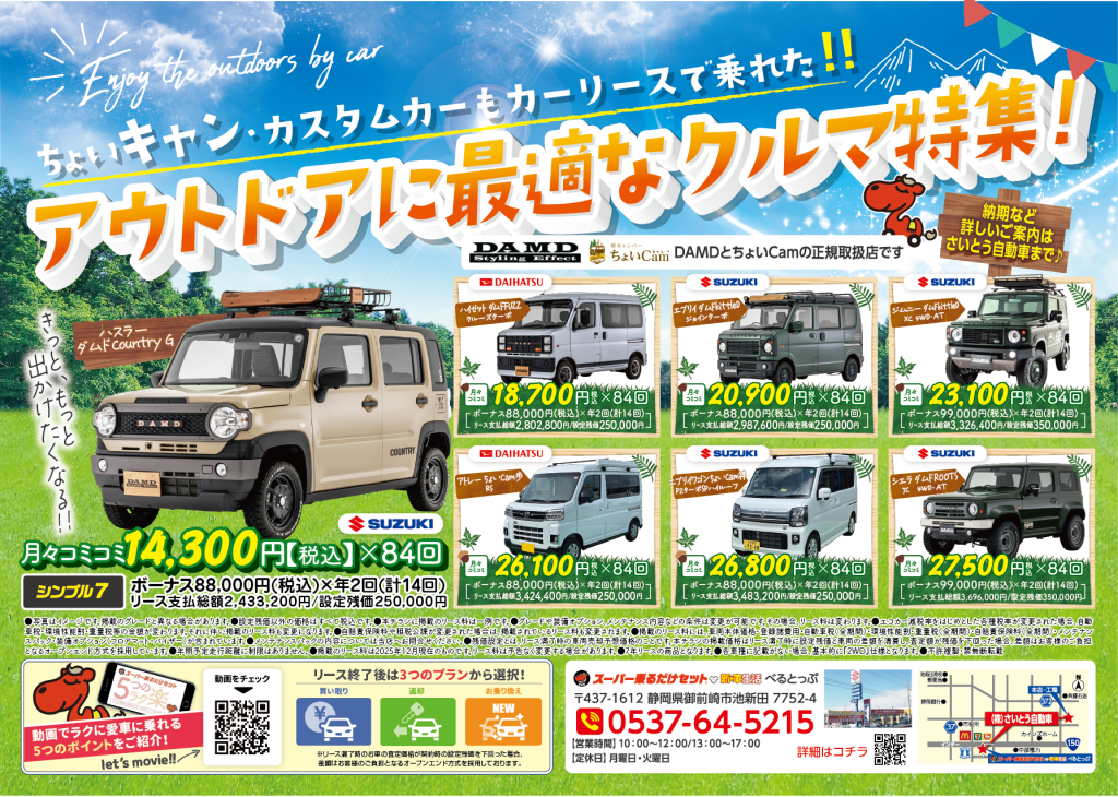 福祉車輌・ダムドコンプリートカー・軽キャンピングカーちょいCamのリースも可能です