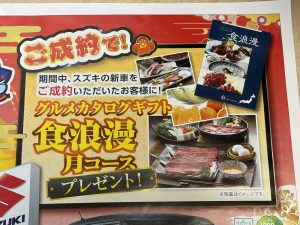 期間中にスズキの新車をご成約いただいたお客様にプレゼント