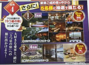 ご成約の中から抽選で「5つ星の宿」が当たる