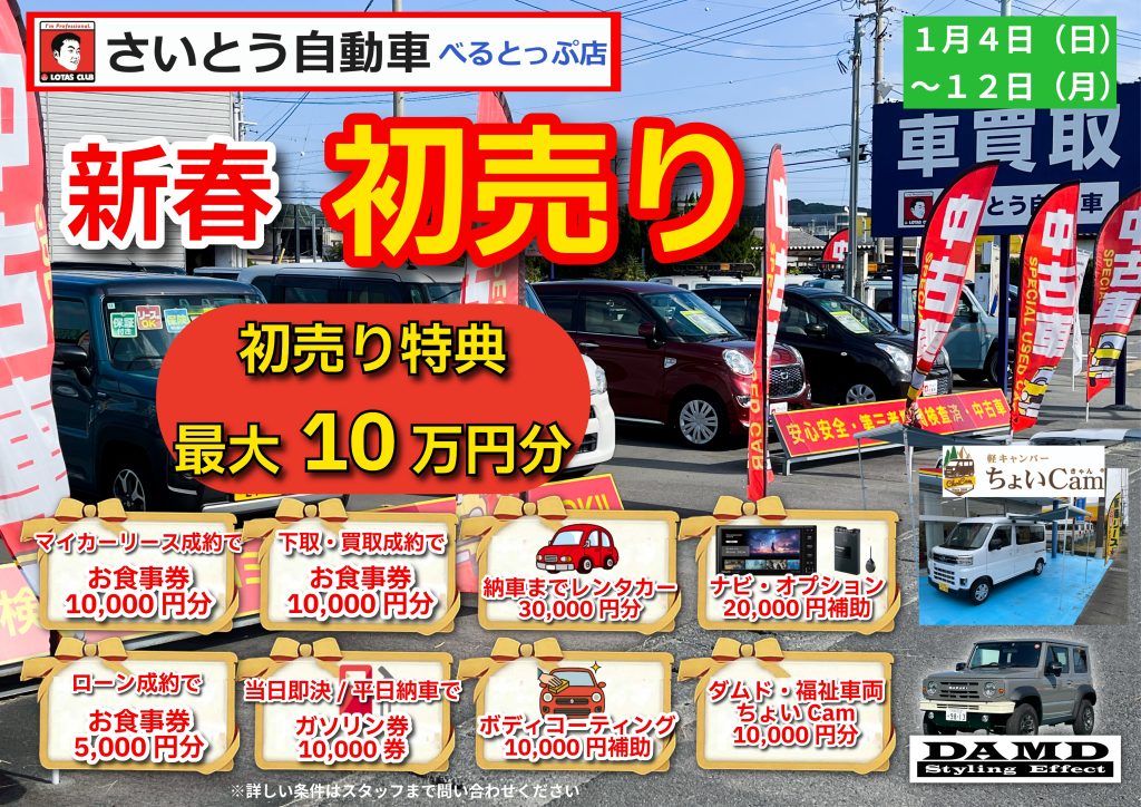 1月4日はべるとっぷ店のみの営業で商談以外の整備等の受付は出来ません